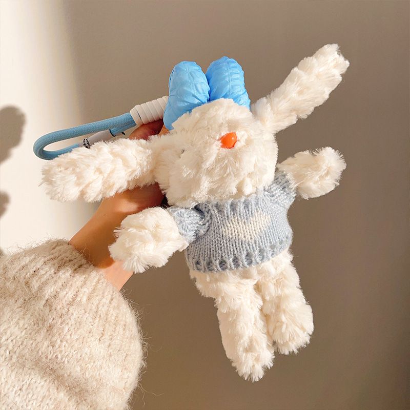Light Blue Plaid Bow Lop-Eared Rabbit