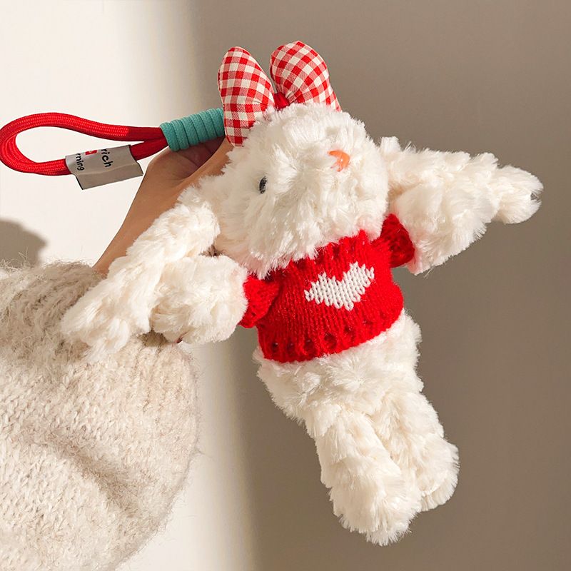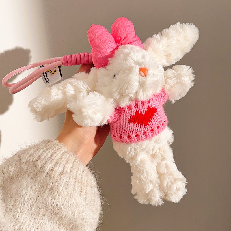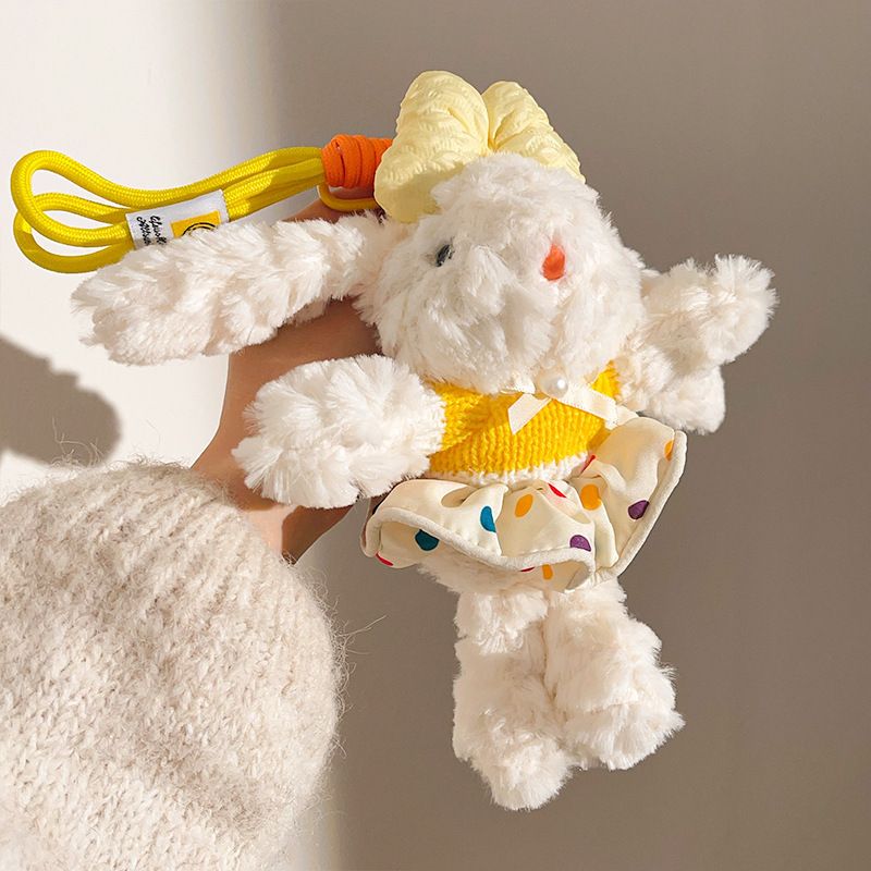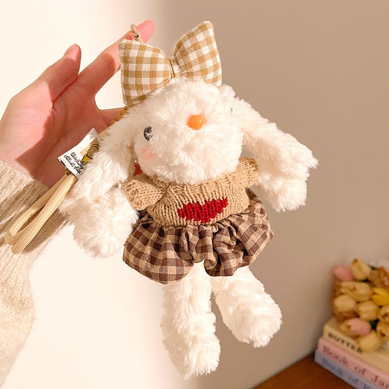 Lop-eared Rabbit Fairy Dress Pearl Bow Plush Doll Girl's Bag Charm Trendy Doll Keychain Super Soft Short Plush PP Cotton Filling